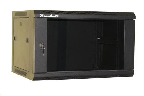 XtendLan 19" nástěnný rozvaděč 9U 600x450, nosnost 60 kg, skleněné kouřové dveře, svařovaný, černý