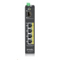 5-port Gigabit switch: 4x GbE + 1x SFP, PoE (802.3at, 30W), Power budget 120W, DIN rail/Wall mount, IP30 napájení pouze pomocí průmyslového zdroje.